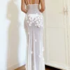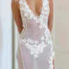 Sheer mesh, decorative flowers, deep v neck, ankle length, side slits, casual sleeveless beach dress, slim fit design easy to show your charming curves, keeping you comfortable all day.