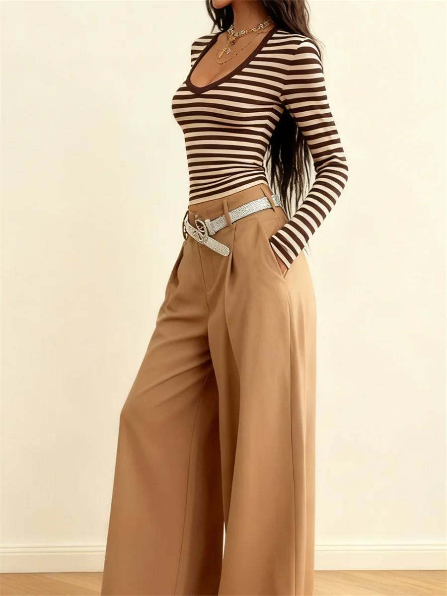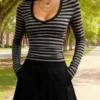 Womens Long Sleeve Tops Slim Fit Stylish Striped Scoop Neck Long Sleeve T-Shirt for Fall/Winter